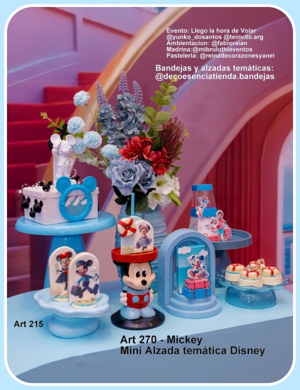Estos modelos son super originales y exclusivos de DECO ESENCIA TIENDA® . Los Confeccionamos de manera totalmente artesanal y los personalizamos segun las necesidades de cada cliente. Son ideales para complementar tu Ambientación con temática MICKEY Y SUS AMIGOS . Además de decorar la mesa con los personajes de DISNEY, son funcionales ya que puedes lucir en su platito superior tus piezas de pasteleria con esta temática. Puedes exponer cupcakes, macarrones, cookies 3D , cakepops, oreo bañadas, alfajores, mini tortas o golosinas en tu mesa de CANDY BAR.