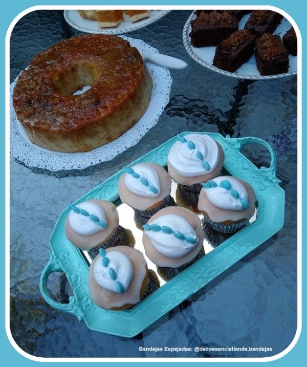 Bandeja Decorativa para Candy Bar, confeccionada artesanalmente en resina cerámica (ecológica). Espejada. Terminación de cartapesta en la base. Pintada a mano , en color a elección.