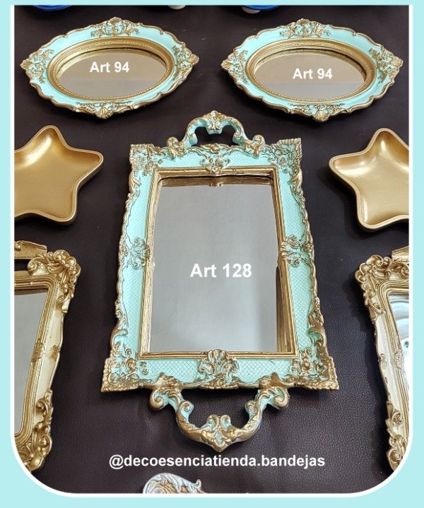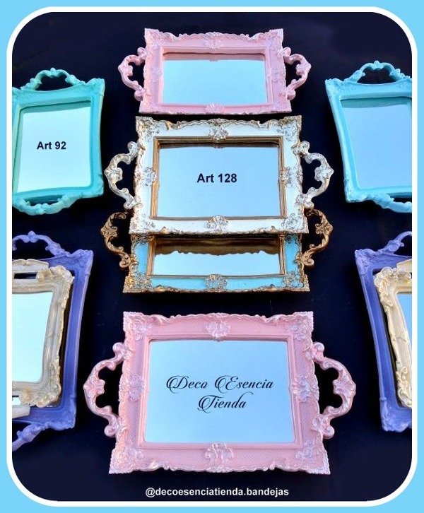 Bandeja Decorativa para Candy Bar, confeccionada artesanalmente en resina cerámica (ecológica). Espejada. Terminación de cartapesta en la base. Pintada a mano , en color a elección.