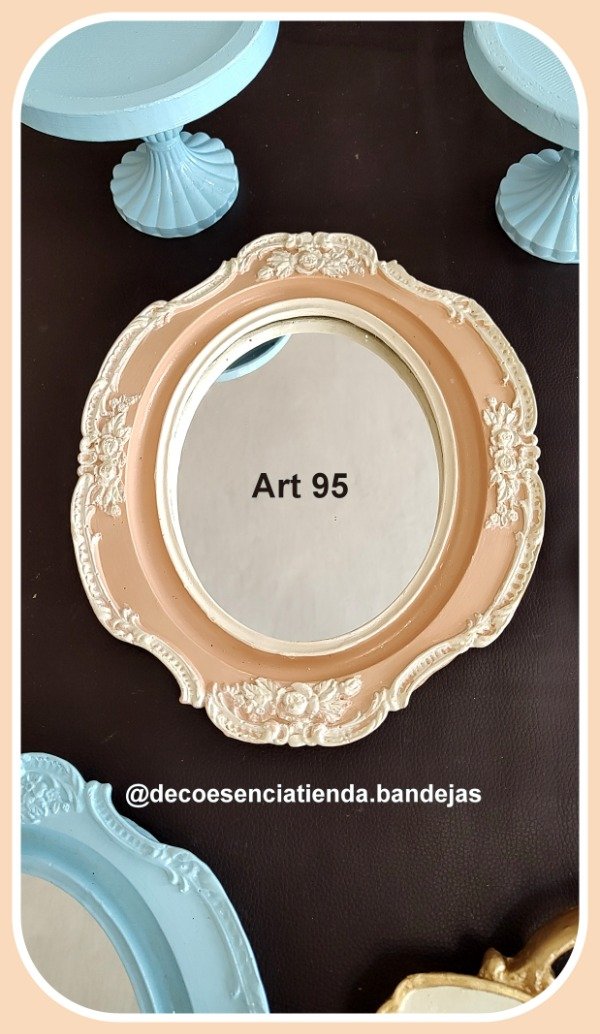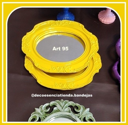 Bandeja Decorativa para Candy Bar, confeccionada artesanalmente en resina cerámica (ecológica). Espejada. Terminación de cartapesta en la base. Pintada a mano , en color a elección.